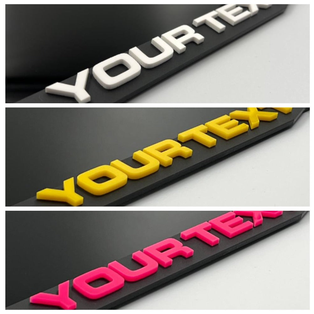100% Eye-Catching! Custom 3D Raised Letters, License Plate Frame (Cover), Acrylic, Any Color, Any Language, Universal Fit, Weather-Resistant, Black/White/Glossy